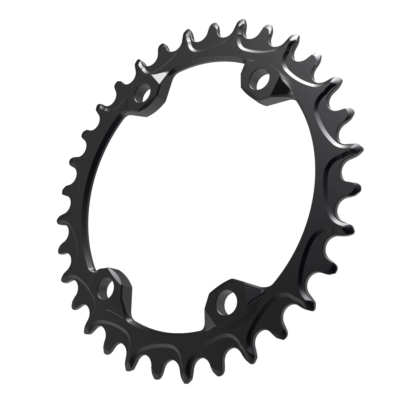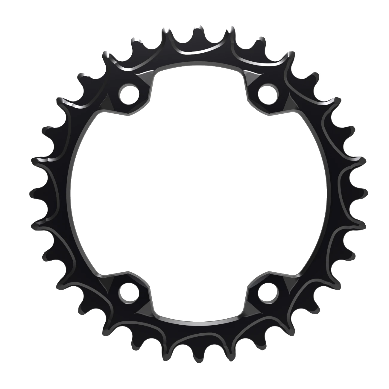 De kettingbladen zijn CNC gefreesd uit 7075 T6 aluminium en industrieel hard geanodiseerd, dit proces biedt lange, holistische bescherming tegen schokken, zorgt voor een goed uiterlijk en een geweldig gevoel op elk kettingblad. Een 1X tandprofiel elimineert kettinggeluid, vermindert slijtage en zorgt voor een soepele werking van het hele systeem in de meest voorkomende combinaties, zoals 10-, 11- en 12-speed aandrijvingen. De Narrow Wide tanden geleiden de ketting altijd betrouwbaar.