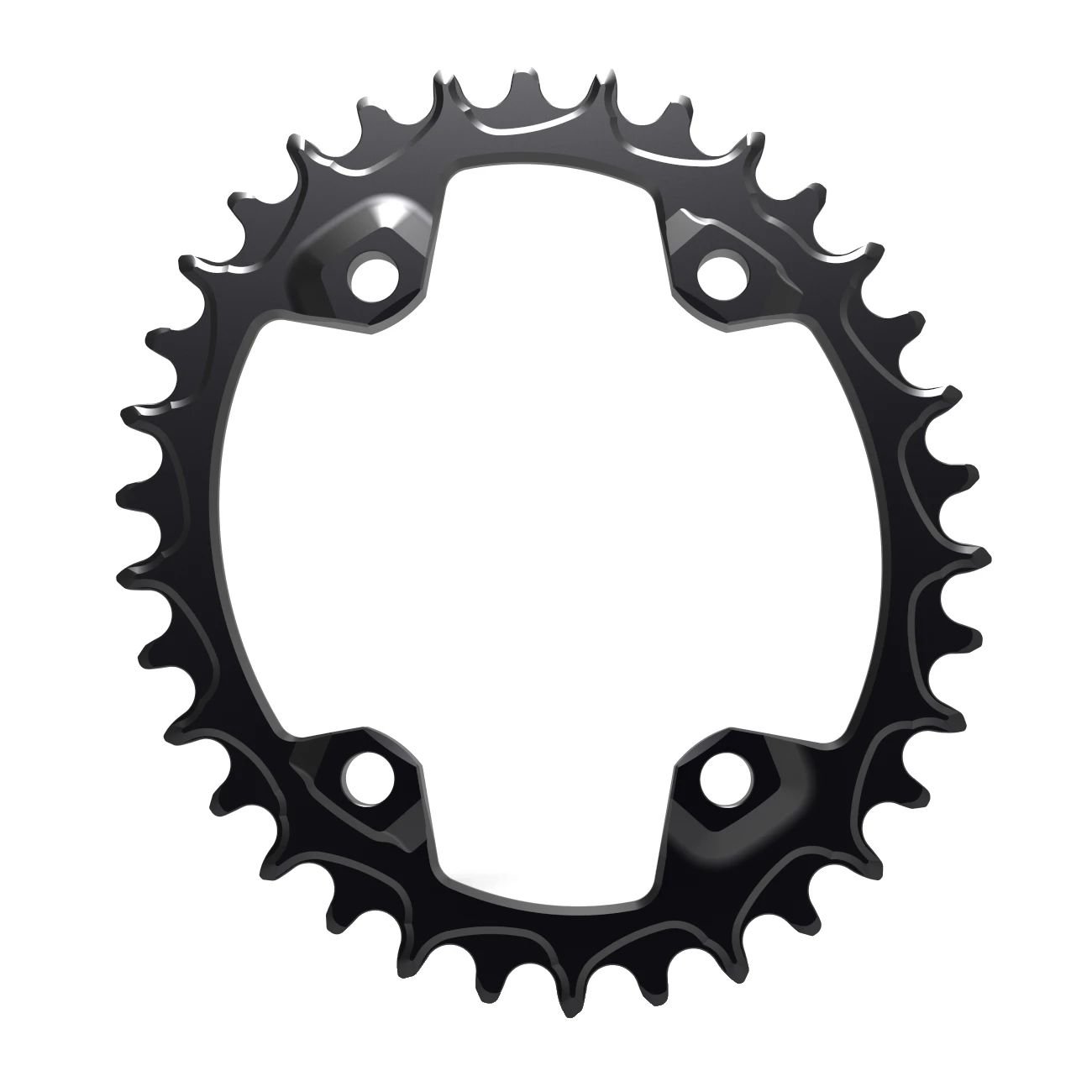 De kettingbladen zijn CNC gefreesd uit 7075 T6 aluminium en industrieel hard geanodiseerd, dit proces biedt lange, holistische bescherming tegen schokken, zorgt voor een goed uiterlijk en een geweldig gevoel op elk kettingblad. Een 1X tandprofiel elimineert kettinggeluid, vermindert slijtage en zorgt voor een soepele werking van het hele systeem in de meest voorkomende combinaties, zoals 10-, 11- en 12-speed aandrijvingen. De Narrow Wide tanden geleiden de ketting altijd betrouwbaar.