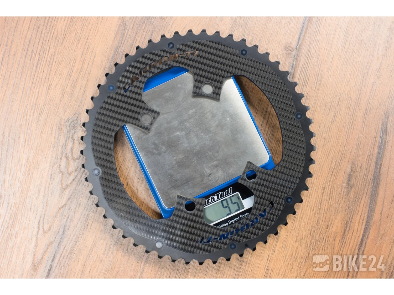 - Gewicht: ongeveer 95g / 53T (gewogen door Bike24).
