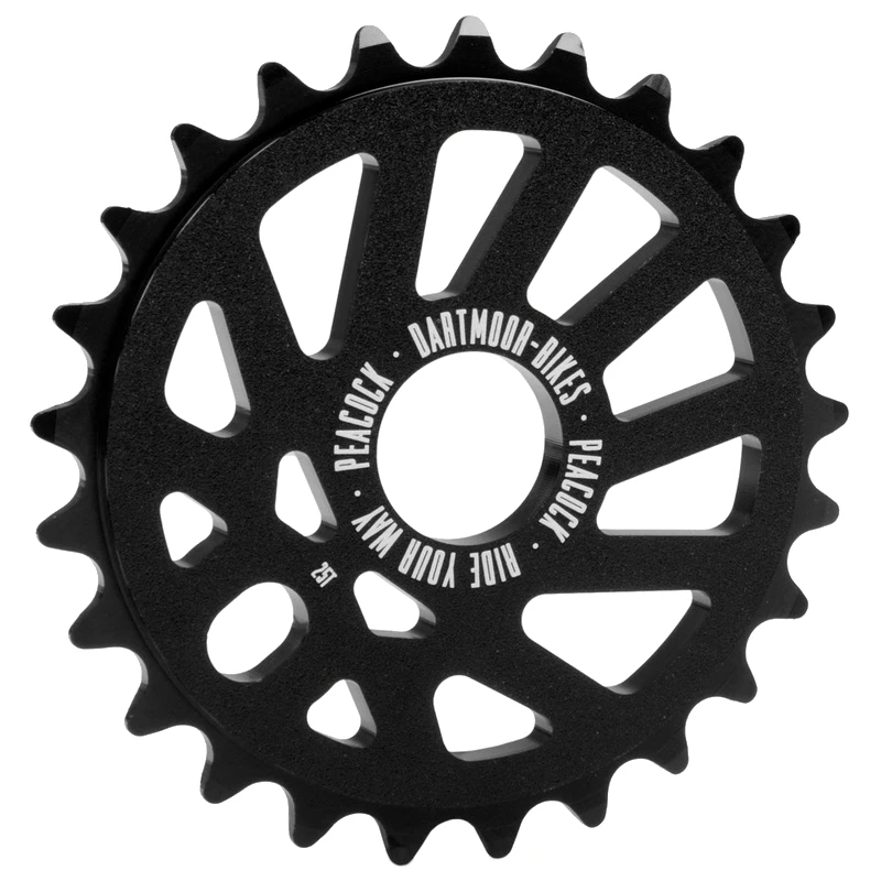Met zijn opvallende ontwerp zal het duurzame Dartmoor Peacock aluminium kettingblad een blikvanger zijn op elke BMX. Terwijl het fabricageproces uit de stempelvorm niet alleen een betaalbare prijs mogelijk maakt, maar ook de algemene stabiliteit ten goede komt, verhogen de CNC-gefreesde tanden ook de duurzaamheid van het singlespeed kettingblad.