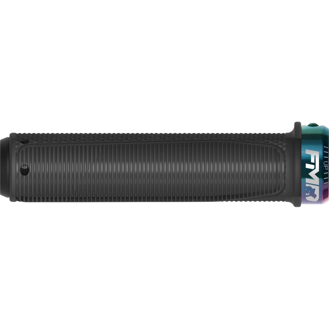 Voor maximale feedback heeft de greep een slank ontwerp, maar biedt door de bovenste vinnen een extreem hoge mate van demping in de handpalm. De onderste greepzone (vingers) is bijzonder uitgesproken om de grijpkrachten bij het optrekken van het voorwiel te minimaliseren. De binnenste aanslag verbetert bovendien de snelle positionering van de hand en zorgt voor volledige bedienbaarheid van de schakelhendels.
