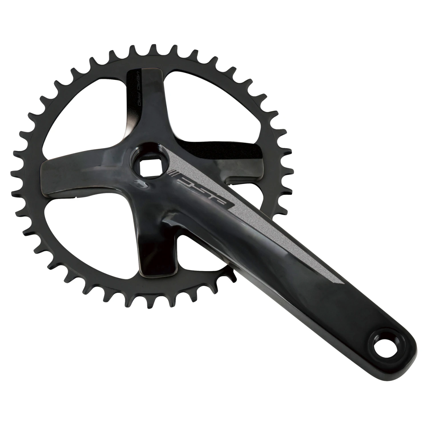 De FSA Vero crank valt op door de uitstekende prijs-kwaliteitverhouding die kenmerkend is voor de serie. Het solide 1-speed crankstel heeft gesmede aluminium crankarmen met een gepolijste, zwart geanodiseerde afwerking en een vierkante bevestiging voor JIS bottom brackets. Het stalen kettingblad is voorzien van het beproefde FSA MegaTooth profiel, dat ervoor zorgt dat de ketting ook bij grote hellingshoeken of in slechte weersomstandigheden goed blijft liggen.
