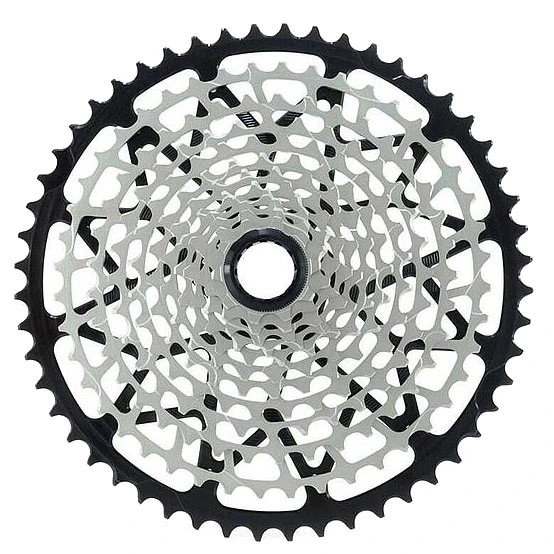 Het vervaardigen van zo’n lichtgewicht MTB cassette vereist nauwkeurige CNC bewerking. Het grootste tandwiel is gemaakt van een 7075-T6 aluminiumlegering en is geanodiseerd. Tegelijkertijd zijn de andere 11 cassettetandwielen gefreesd uit één blok gehard staal en voorzien van een duurzame nikkelcoating voor maximale duurzaamheid. Een bijpassende gekleurde slotring is inbegrepen.