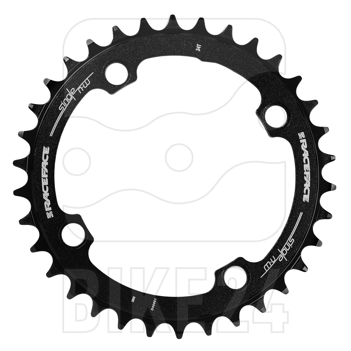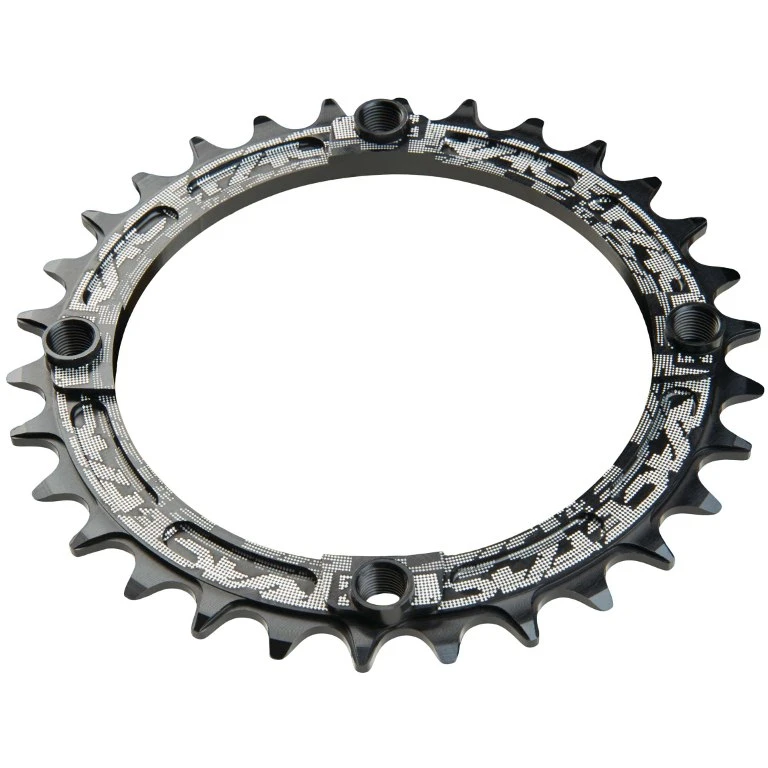 Race Face kettingblad met smal-wijd tandprofiel als effectief middel om het afspringen van de ketting te voorkomen. De kettingbladen zijn gemaakt van 7075-T6 aluminium en zorgen voor een uitstekende krachtoverbrenging dankzij hun dikte van 4 mm.