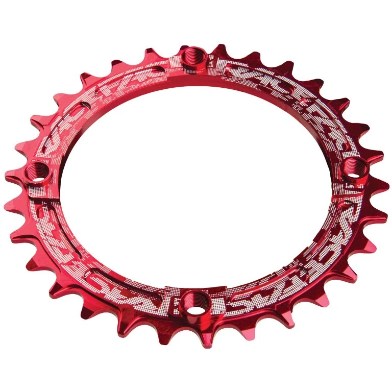 Race Face kettingblad met smal-wijd tandprofiel als effectief middel om het afspringen van de ketting te voorkomen. De kettingbladen zijn gemaakt van 7075-T6 aluminium en zorgen voor een uitstekende krachtoverbrenging dankzij hun dikte van 4 mm.