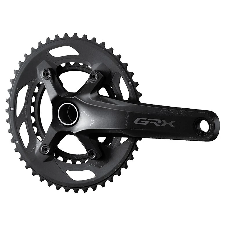 Shimano’s GRX crankstel is ontworpen voor een grote verscheidenheid aan terreinen en rijstijlen, en heeft een 2,5 mm bredere kettinglijn die meer ruimte creëert in het frameontwerp en voor bredere banden.