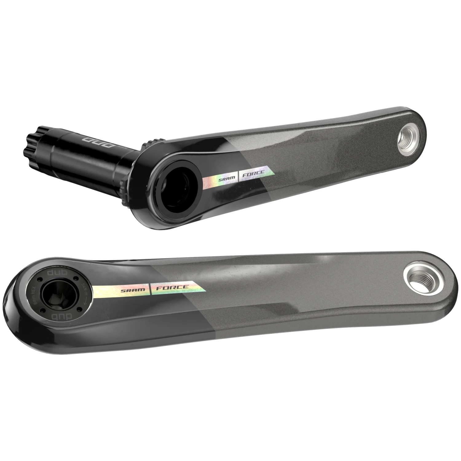 De SRAM Force crank maakt indruk met zijn lage gewicht en verhoogde stijfheid. Dit komt door de crankarmen van koolstofvezel, die er ook nog eens goed uitzien met hun glanzende oppervlak en de glinsterende “Iridescence” logo’s. Maar ook de reeds bewezen technologie draagt bij tot een grotere duurzaamheid van het hele systeem.