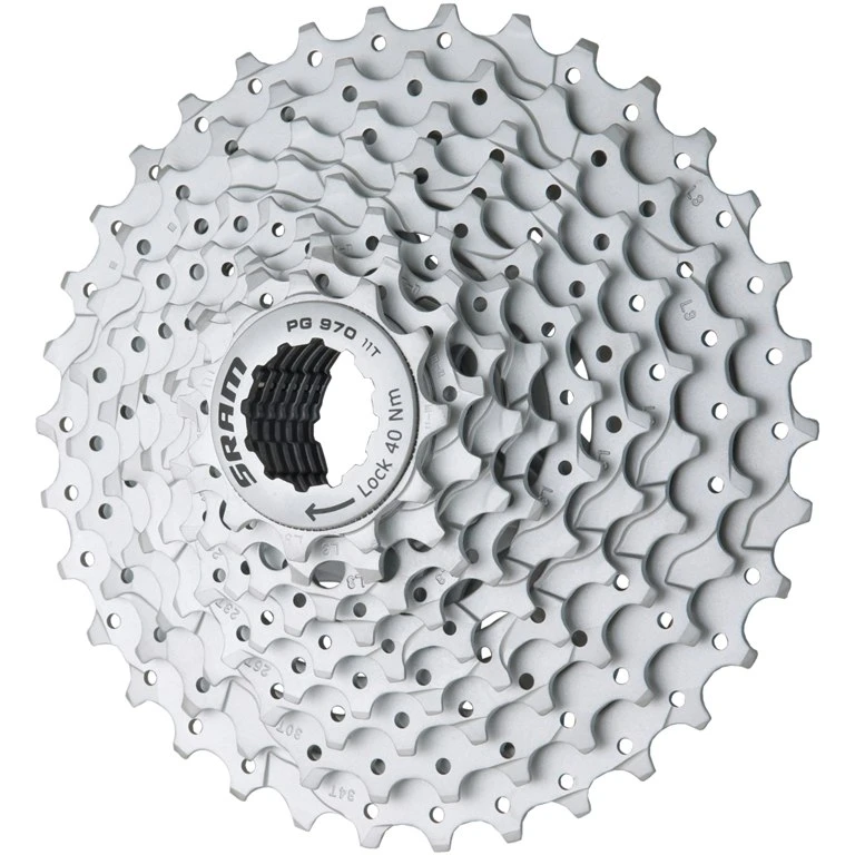 Solide SRAM 9-speed MTB cassette in satijnchroom afwerking. Met SRAM Powerglide II technologie voor nauwkeurig en gemakkelijk schakelen.