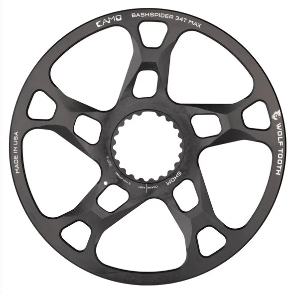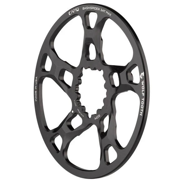 De Wolf Tooth CAMO BashSpider is ’s werelds enige op het crankset gemonteerde Boost bash ring. Het is een spider met een geïntegreerde bash ring voor gebruik met Direct Mount cranksets. De CAMO BashSpider wordt gecombineerd met een CAMO kettingblad om het CAMO systeem compleet te maken. Met de BashSpider kan de berijder gemakkelijk over obstakels heen. Bash ringen gemonteerd op het crankstel worden beter ondersteund dan Bash ringen gemonteerd op het frame of de trapas, omdat deze de garantie op het frame kunnen doen vervallen.