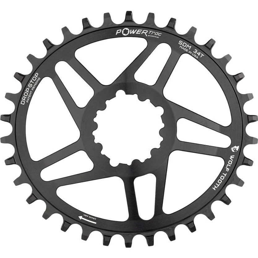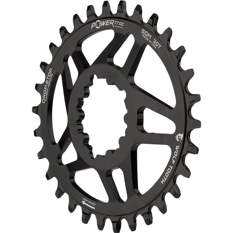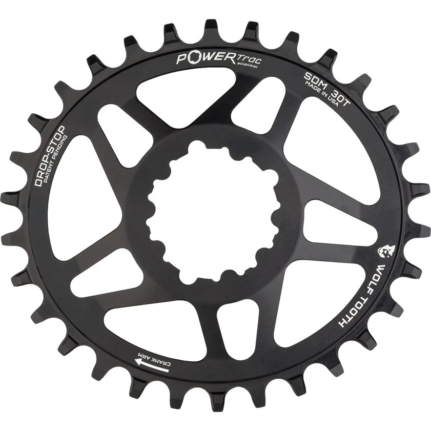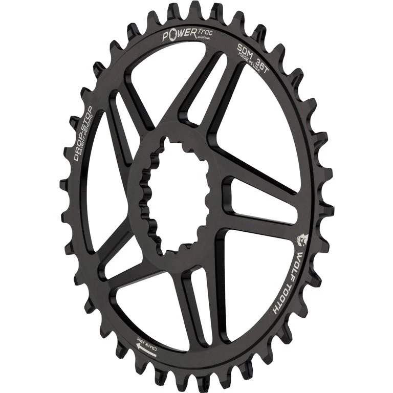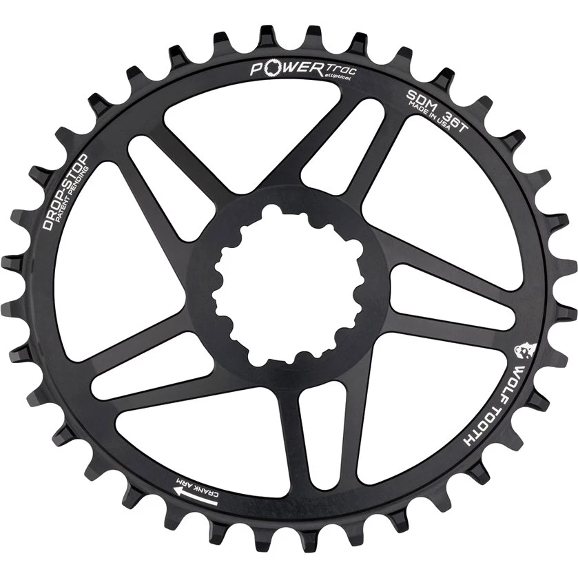 De elliptische Wolftooth Direct Mount kettingbladen hebben Wolftooths speciale Drop-Stop Tooth ontwerp, dat effectief voorkomt dat de ketting van het kettingblad valt.