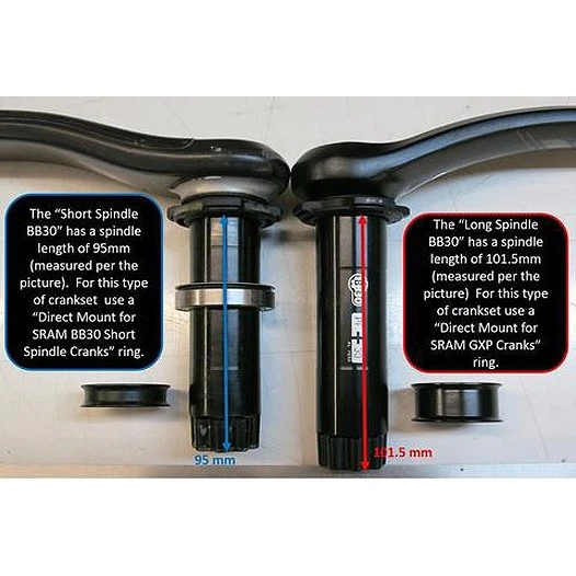 Wolftooth 5-spaaks spinloze Direct Mount kettingbladen kunnen worden gebruikt met alle SRAM BB30 Direct Mount cranks met een korte as (zie productafbeeldingen voor verdere uitleg).