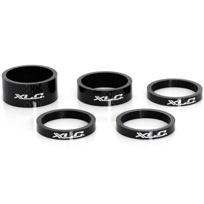 XLC carbon spacer set voor 1 1/8 inch (28,6 mm) stuurbuis diameter, bestaande uit 3 x 5mm, 1 x 10mm, 1 x 15mm.